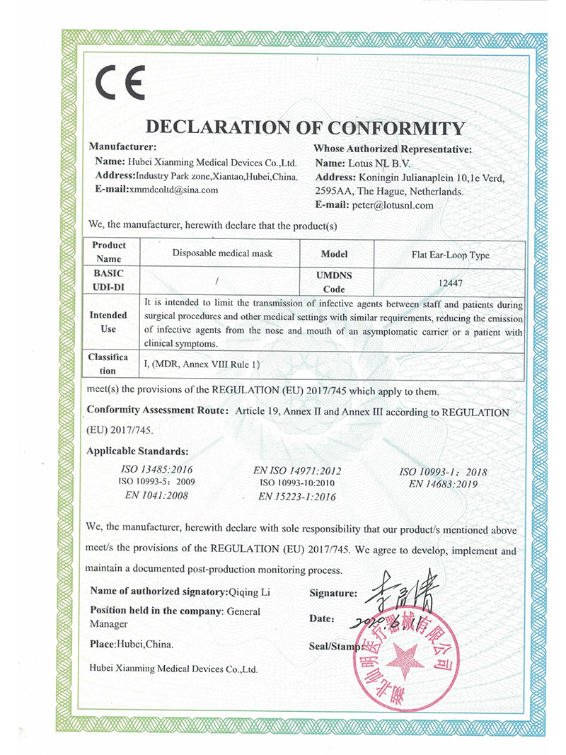 二類醫(yī)療器械注冊證(醫(yī)用口罩)